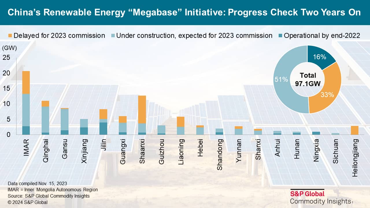 It has been two years since President Xi Jinping announced the development of about 100 GW of wind and solar to kick-start the national renewable megabase initiative in China. Two-thirds, or 65.3 GW, of the projects in the first batch can be grid commissioned within two years. The top-down planning mechanism favored such a development pace. Developers backed by state-owned enterprises (SOEs) contributed 45.8 GW, or 70% of the total expected capacity additions within the first two years of megabases development. Despite the coordinative efforts, roadblocks have delayed the remaining 32 GW of projects from the originally planned schedule.