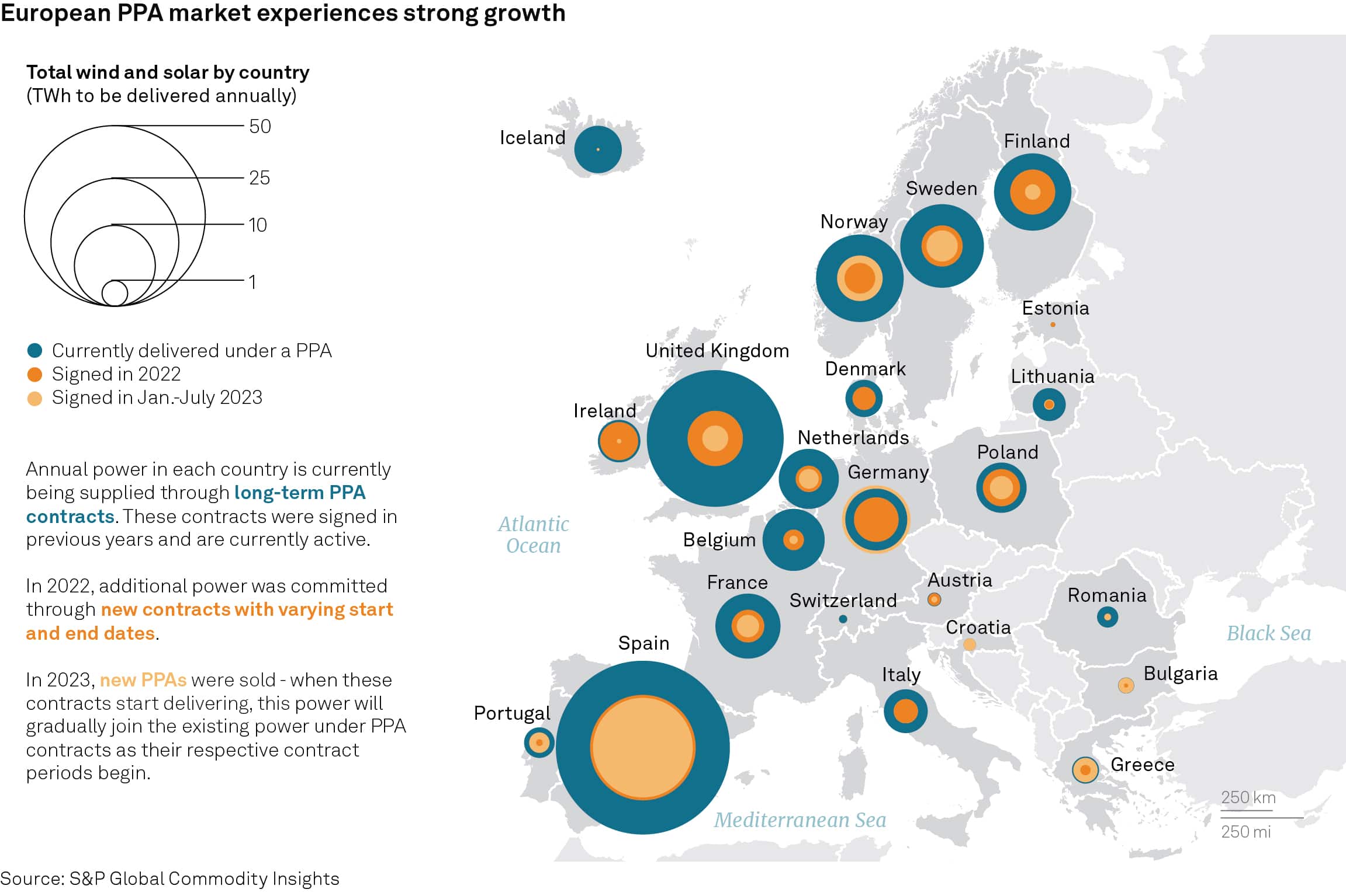 Only nine months into 2023, the European Power Purchase Agreement (PPA) landscape is setting remarkable records. As of August 2023, over 20 GW of PPAs have already been signed, equivalent to an annual energy production of 42 TWh, which is nearly on par with Hungary's annual energy consumption. This surge in activity encompasses a total of 160 deals, almost matching the 180 deals recorded in the entire year of 2022.