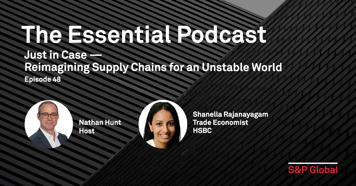 Shanella Rajanayagam of HSBC joins the Essential Podcast to explain the changing necessities of global supply chains and how a Just-In-Time model is being replaced in many sectors by a Just-In-Case model.