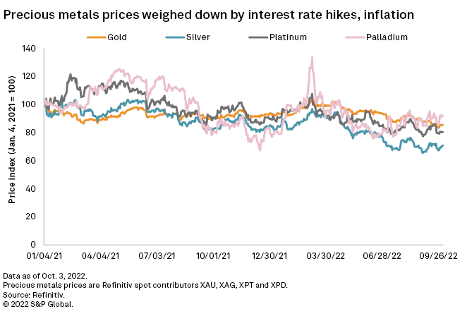 S&P Global Commodity Insights discusses consensus price forecasts for industrial and precious metals, including platinum group metals, amid broader market trends. With September headlines dominated by interest rate hikes and energy supply concerns, the macroeconomic environment is weighing on all metals prices, regardless of fundamentals.