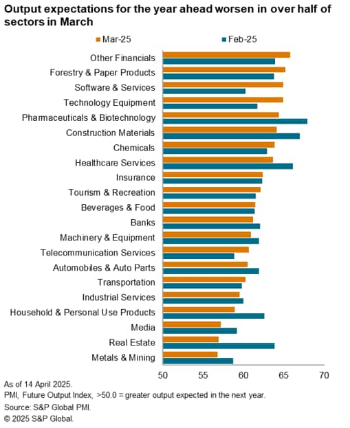 The March data collection period spanned from 12th - 27th March, before additional US automotives tariffs were announced. Upcoming PMI data for April (released in early May) will give an insight into the immediate impact of uncertainty stemming from widespread tariffs.