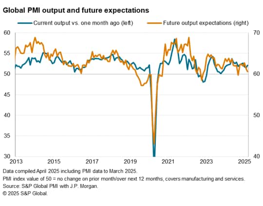 The worldwide PMI surveys - produced S&P Global in association with ISM and IFPSM for J.P.Morgan - recorded faster global output growth in March, but a deterioration in business expectations about the year ahead suggested that the improvement may be short lived.