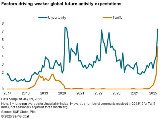 Announcements in May (at the time of writing), including an agreed reduction in bilateral tariffs between the US and mainland China and a limited trade deal between the US and the UK, suggest that business uncertainty and "tariff pessimism" are likely to ease. That said, the continued imposition of a number of bilateral tariffs, as well as the possibility of these rising after the current 90-day pause announced on April 9, indicate a still high degree of caution going forward.