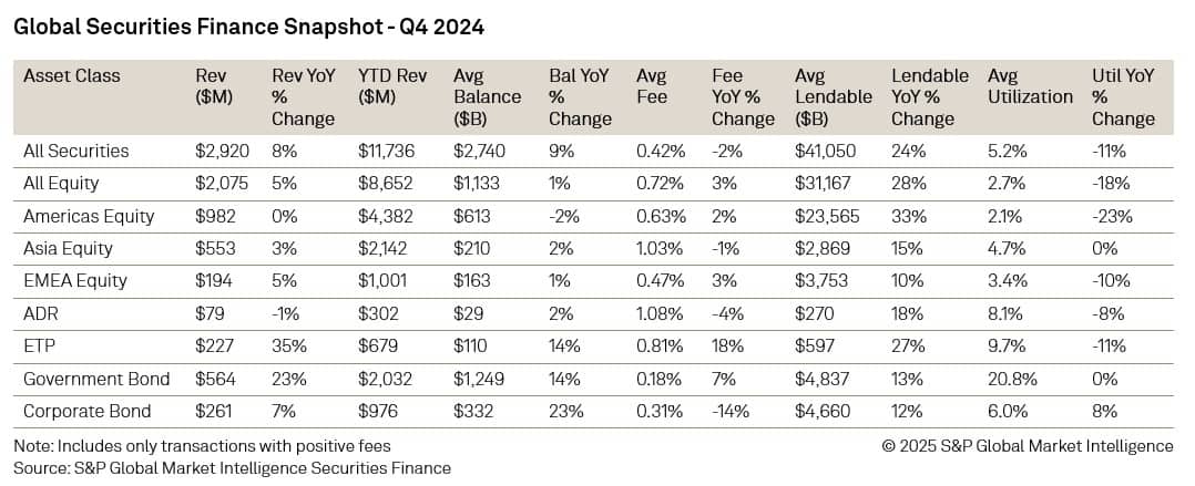As illustrated by the accompanying graph, Q4 revenues were notably robust when compared to previous fourth quarter periods, reflecting a 9% year-over-year increase. This quarter provided investors with numerous opportunities to engage in securities lending, particularly as interest rate expectations were recalibrated and attention shifted from the current US administration to the incoming President-elect. Exchange-traded funds (ETFs) and fixed income assets emerged as the standout asset classes for the quarter, driven by increased positioning around market events. These asset classes are expected to maintain their momentum as we move into 2025.