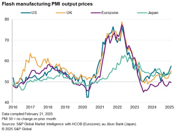 Tariffs were also widely blamed for upward pressure on prices in the US. US manufacturers reported the highest selling price inflation for two years, and a pace now outstripping that seen in the other G4 economies, as input costs in the sector surged higher at a rate not seen since November 2022.