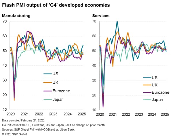 However, the US flash PMI hinted strongly at front-running of sales and shipments ahead of growing tariff concerns, suggesting at least some of the uplift to production in February may prove short-lived.