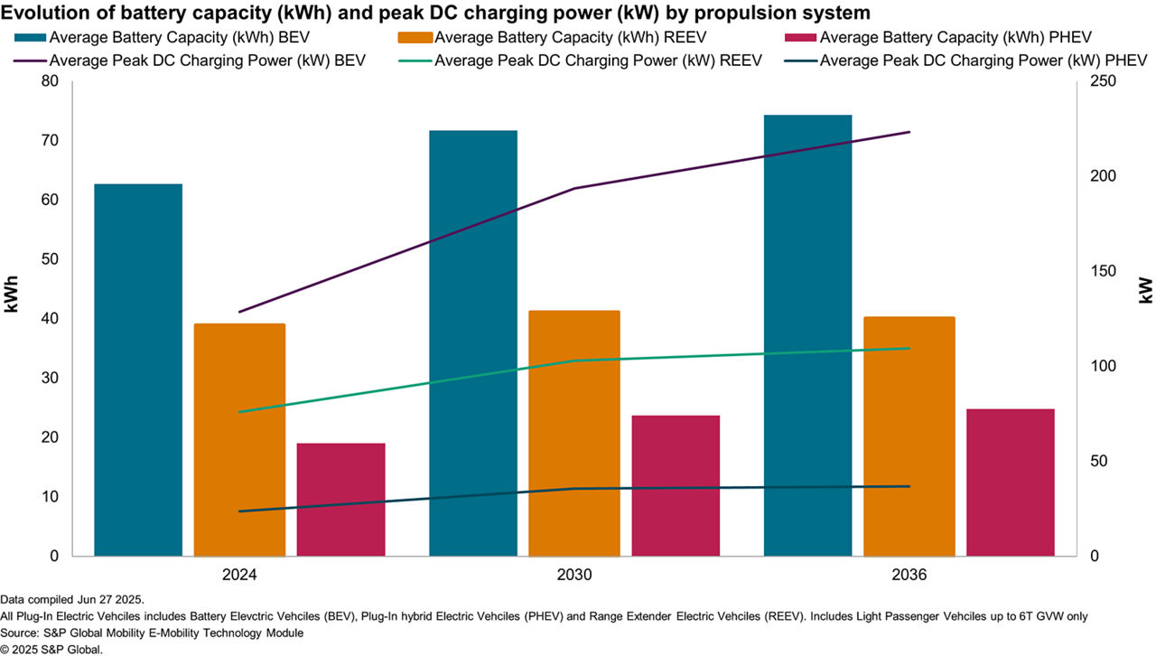 We expect battery capacities to continue increasing, particularly for PHEVs and REEVs. These larger batteries will boost electric range and expand fast-charging capability across more vehicles. Still, we project only a slight rise in average DC charging power for PHEVs and REEVs, suggesting a shift in priorities away from ultra-fast charging toward better range and steadier charging performance.