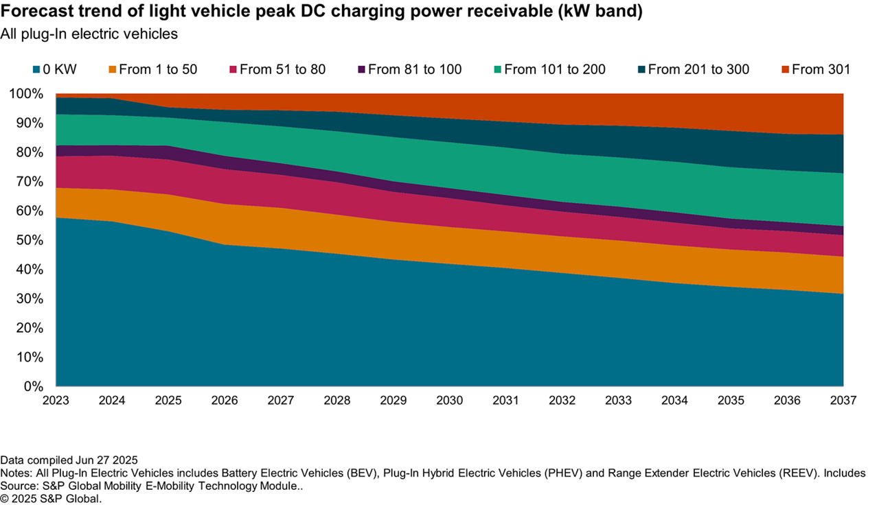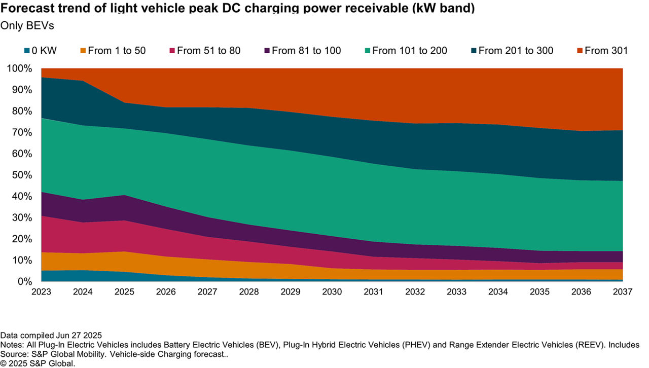 While the overall shift to higher charging power is gradual, BEVs lead the way in adopting faster charging technologies, according to our forecast.