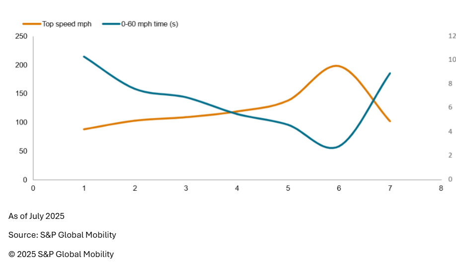 Performance is no longer a luxury reserved for high-end sports cars; it’s now expected across the automotive landscape. S&P Global Mobility data reveals that BEVs are smashing barriers between premium and mainstream vehicles, not only with acceleration rates and top speeds, but also with technologies like regenerative braking systems.