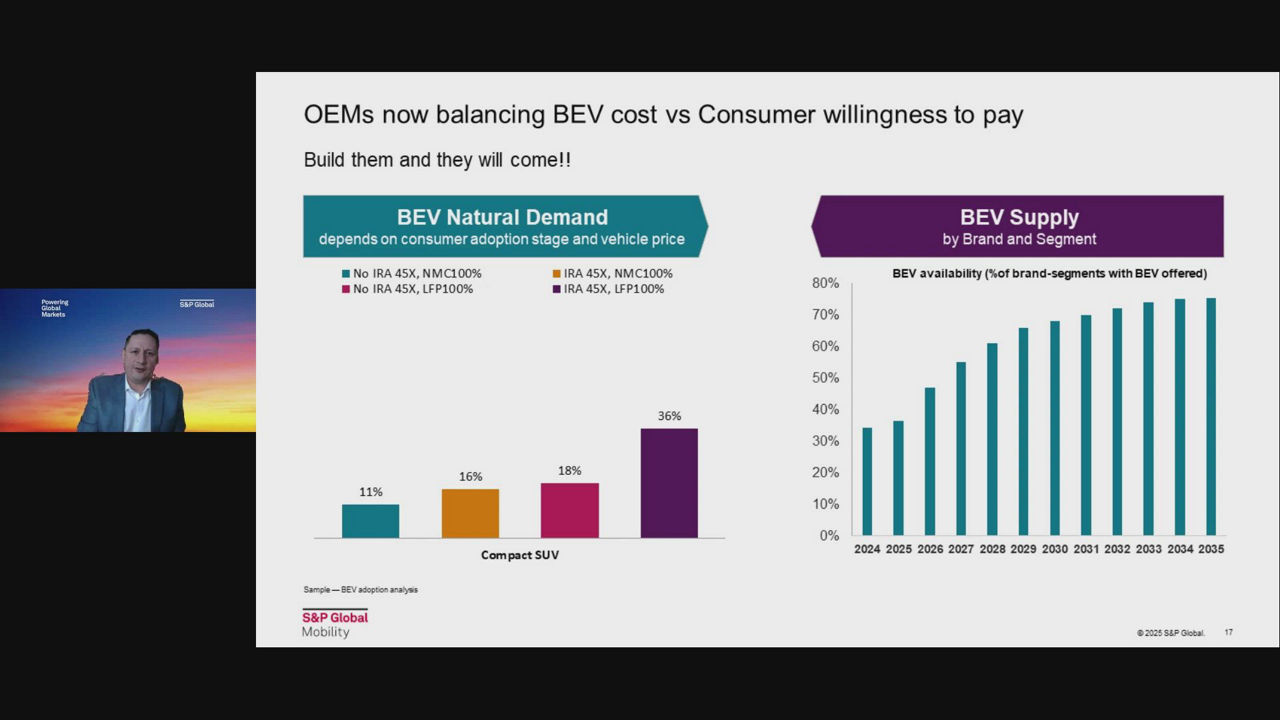 Various countries in Europe have also backed away from aggressive ICE ban timelines, adding uncertainty to the market. Robinet noted that OEMs are extending ICE platforms and developing range extenders, requiring entirely new capital planning strategies.