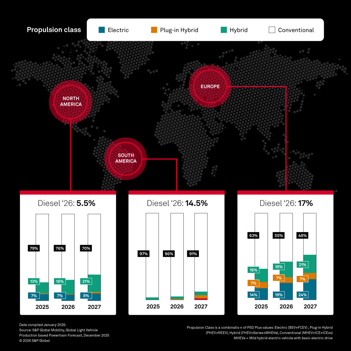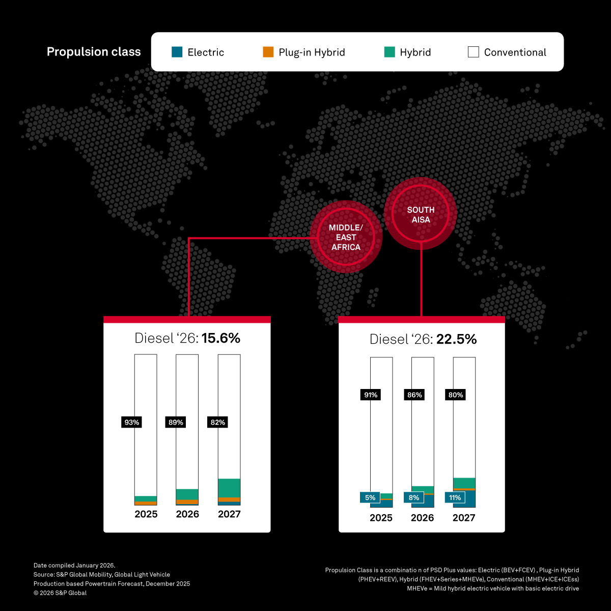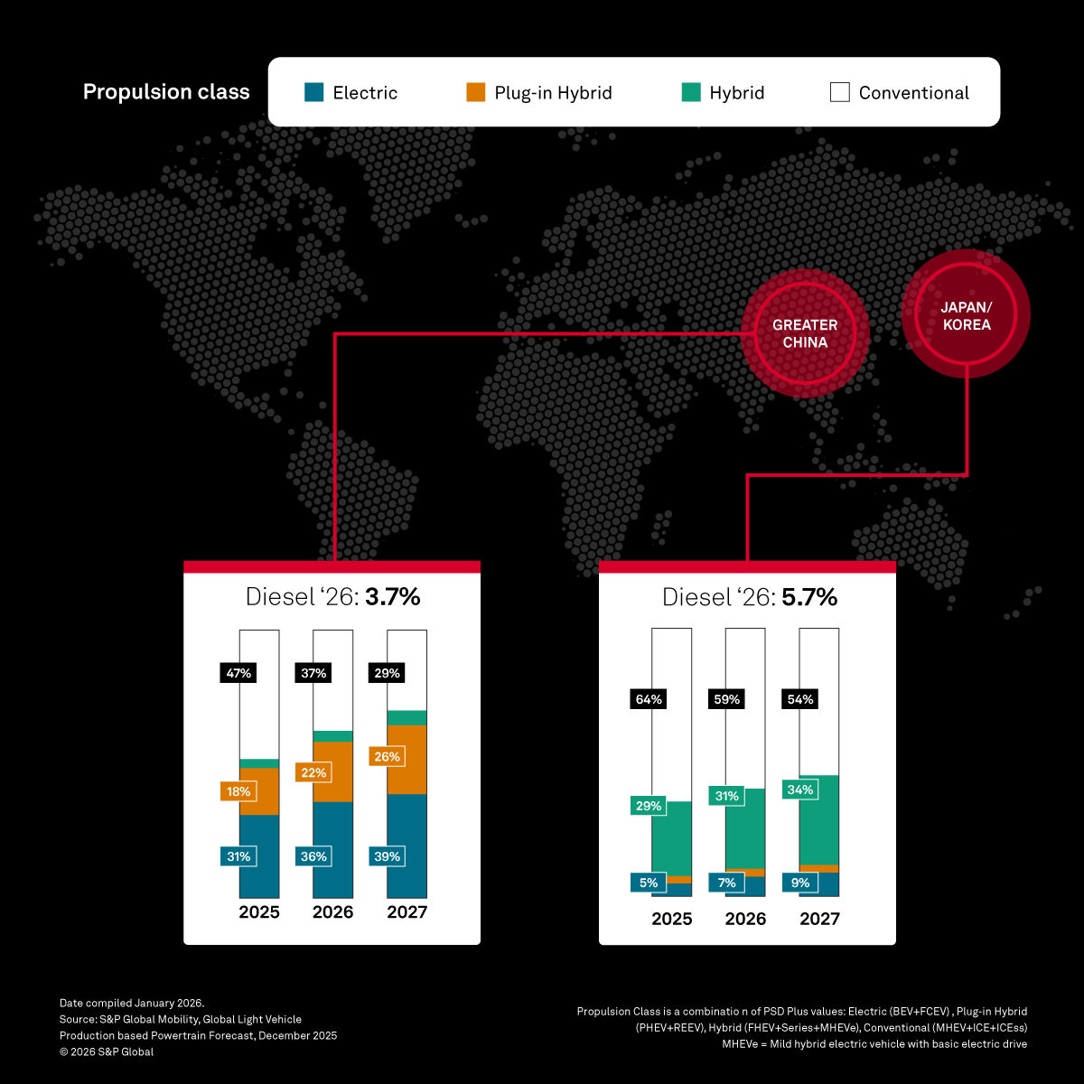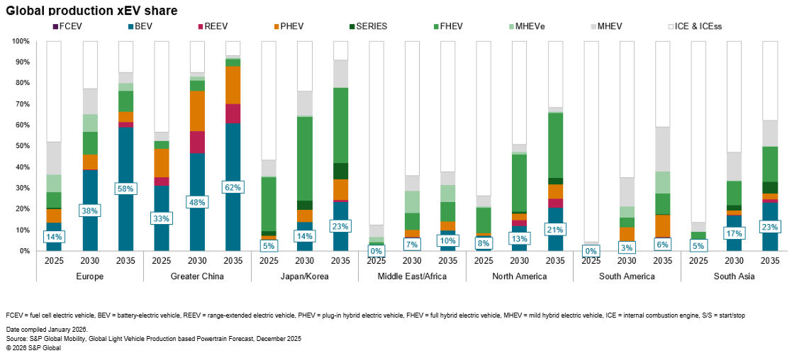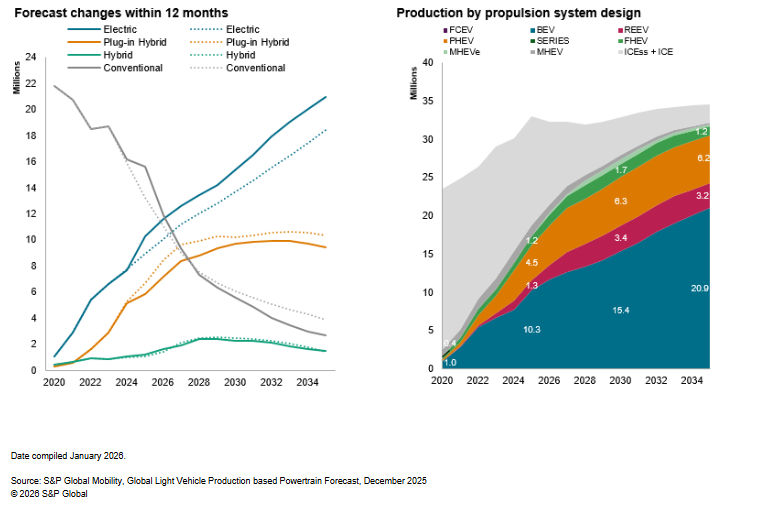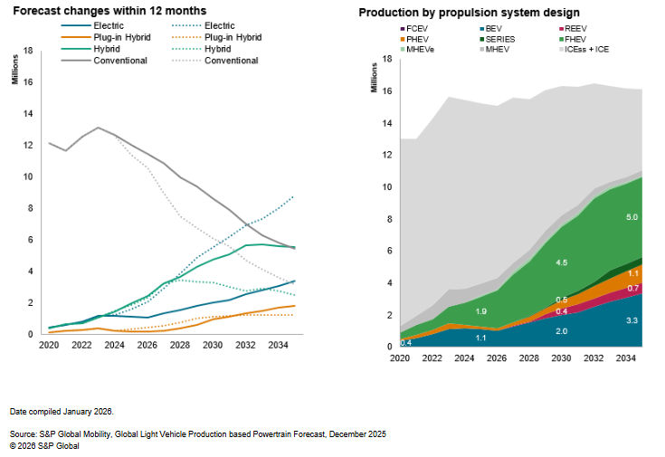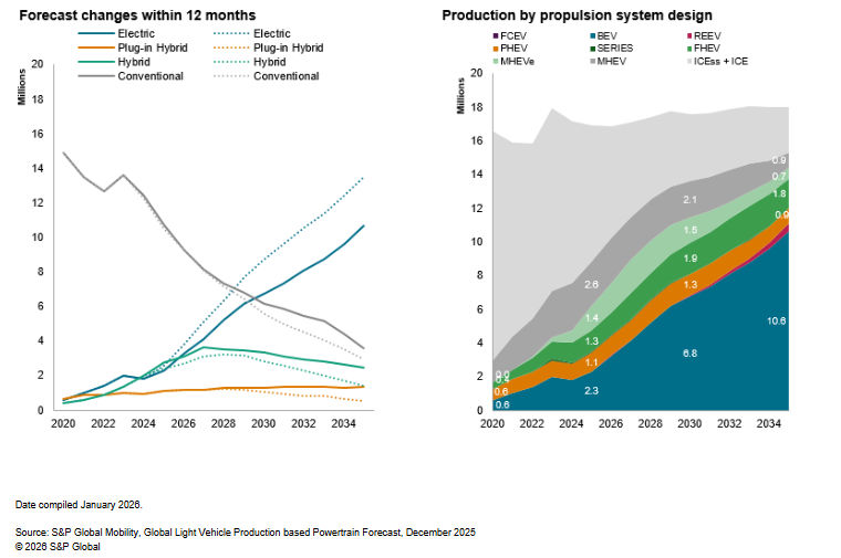 Source: S&P Global Mobility, Global Light Vehicle Production based Powertrain Forecast, December 2025