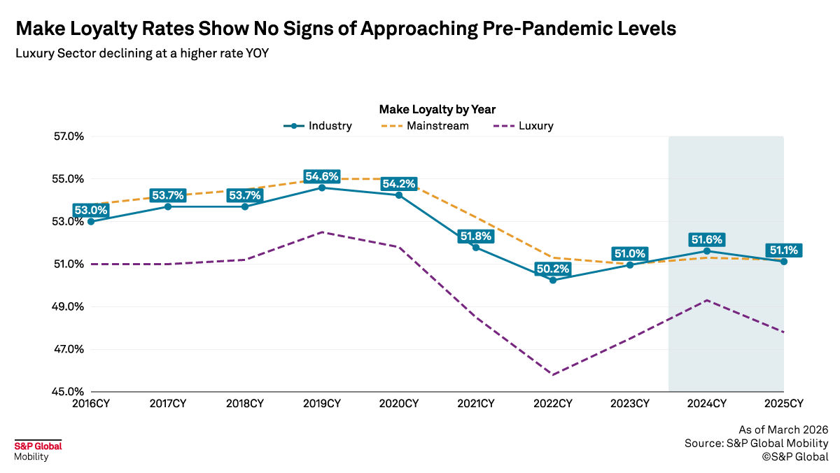 For OEMs and dealers, these numbers cut both ways— creating opportunities for conquest while also increasing the risk of losing loyalty households to competing brands. Affordability challenges exacerbate the situation, creating unusual fluidity in brand relationships.