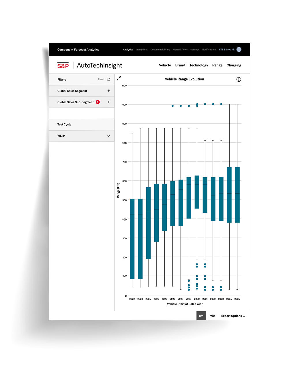 Understand trends, competitor actions, EV technology uptake, feature planning and product marketing. For the first time, evaluate technology forecasts for Battery Electric Vehicle (BEV), Plug-in Hybrid Electric Vehicle (PHEV), and Range-Extended Electric Vehicle (REEV) applications, underpinned by our Sales-Based Powertrain forecast.