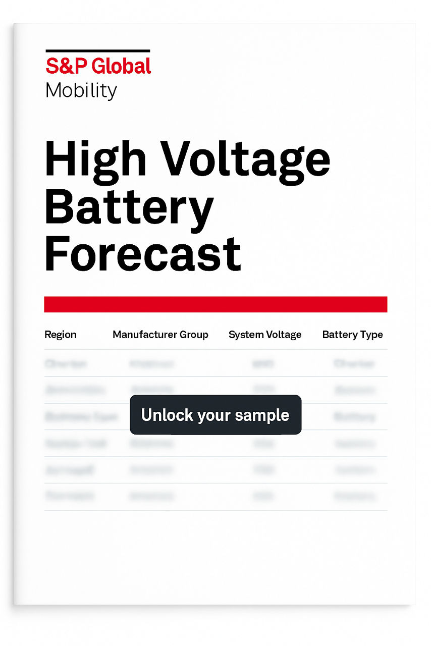 With the High Voltage Battery Forecast sample, you'll get a preview of model‑level battery attributes across regions and technologies, showing how we connect battery design decisions directly to vehicle programs and long‑term forecasts.