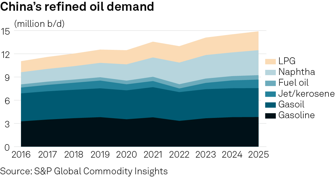 It should be noted, however, that when it comes to oil liquids as a whole, including petrochemical feedstocks such as LPG and ethane, it will take a few more years before China's demand stops growing.