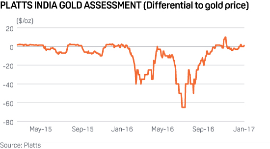 The differential paid for gold in both countries have been positive since the start of the year, with premiums in China reported at $15-20/oz this week ahead of its New Year holidays next month. India — which spent nearly the entire 2016 in discount — has been in premium since January 1, its longest period since, you guessed it, last January.