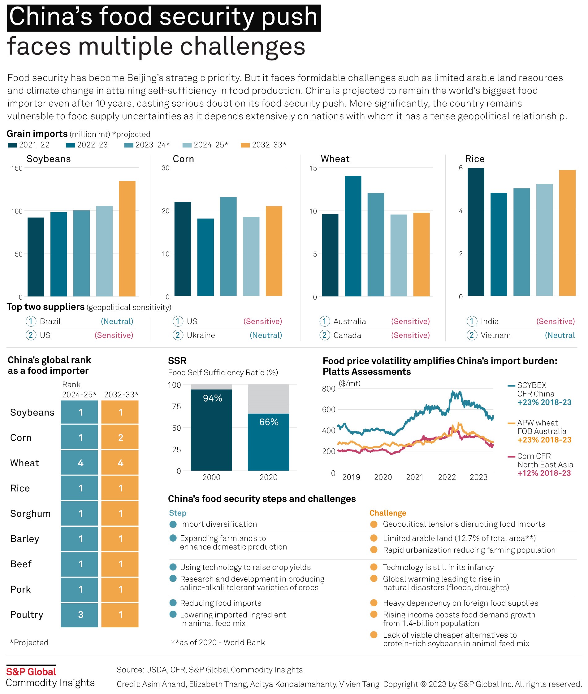 China has put food security as its top strategic agenda in recent years. Beijing wants to be self-sufficient in agricultural production and shield itself from volatility in global food supply chain. But the country's heavy dependence on imports is likely to put the spotlight on the colossal challenges it faces in attaining food self-sufficiency.