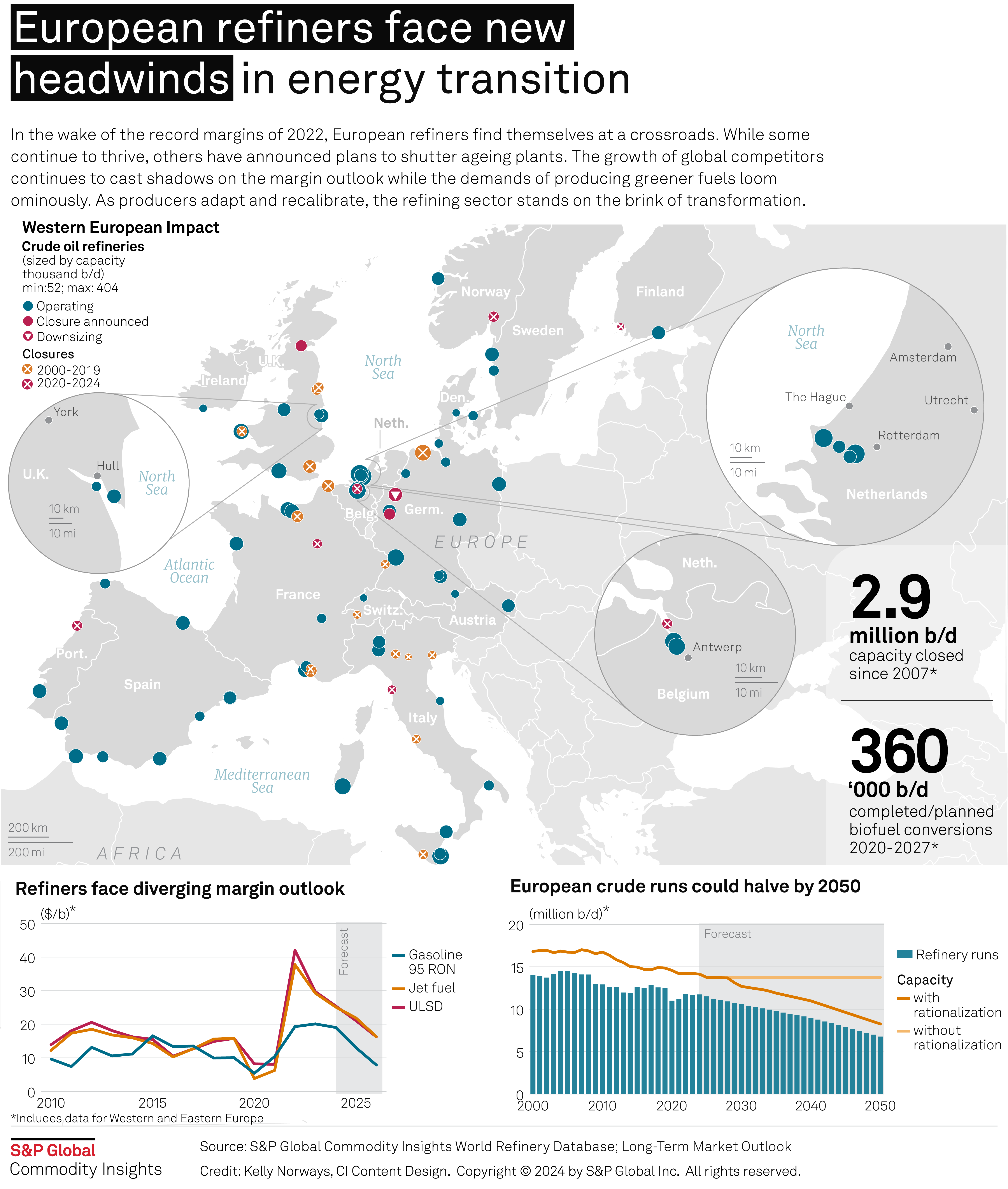 In the wake of the record margins of 2022, European refiners find themselves at a crossroads. While some continue to thrive, others have announced plans to shutter ageing plants. The growth of global competitors continues to cast shadows on the margin outlook while the demands of producing greener fuels loom ominously. As producers adapt and recalibrate, the refining sector stands on the brink of transformation.