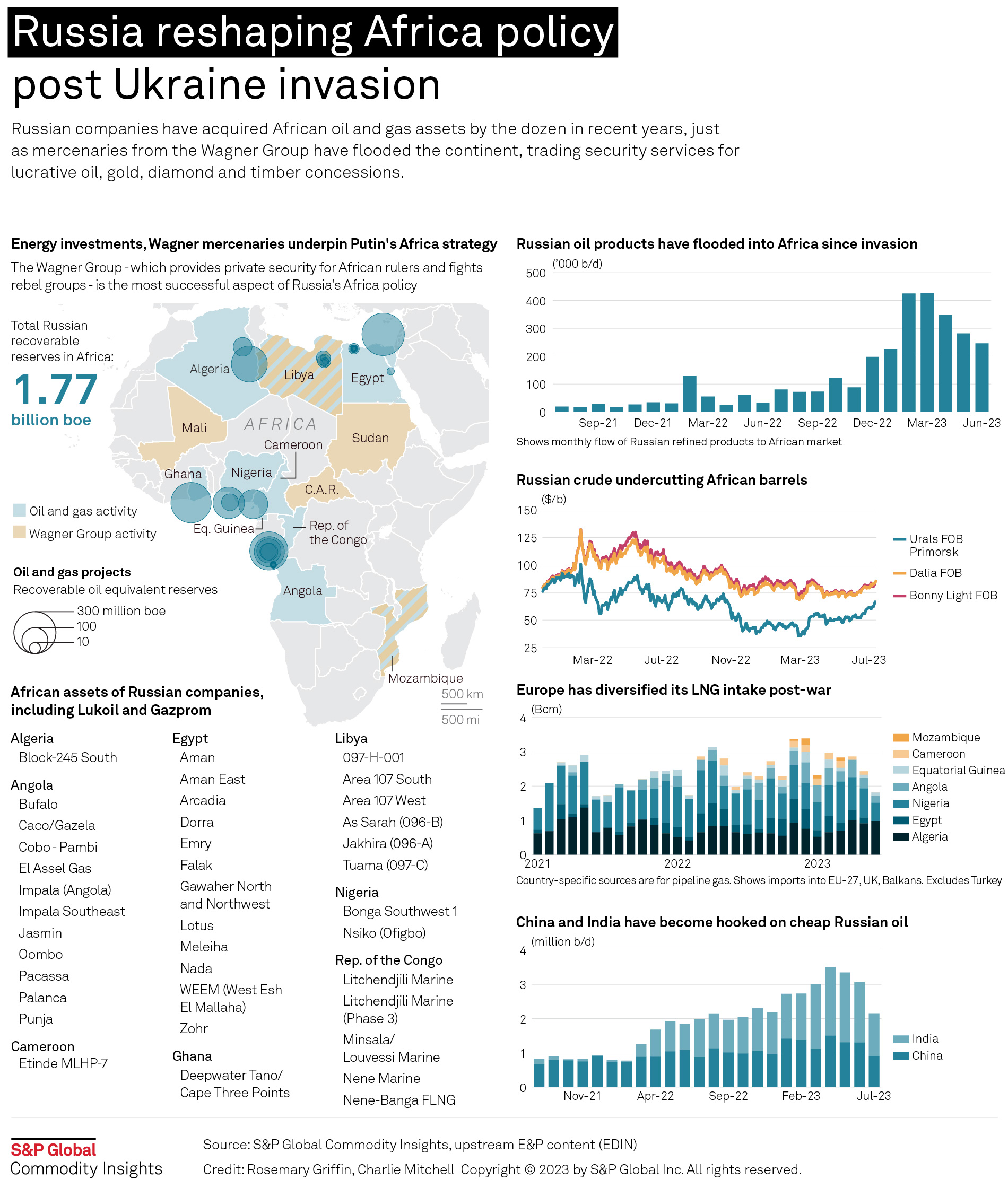 Russian companies have acquired African oil and gas assets by the dozen in recent years, just as mercenaries from the Wagner Group have flooded the continent, trading security services for lucrative oil, gold, diamond and timber concessions.