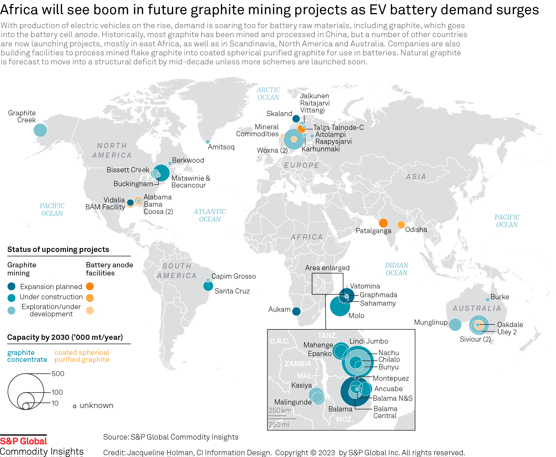 With production of electric vehicles on the rise, demand is soaring too for battery raw materials, including graphite, which goes into the battery cell anode. Historically, most graphite has been mined and processed in China, but a number of other countries are now launching projects, mostly in east Africa, as well as in Scandinavia, North America and Australia. Companies are also building facilities to process mined flake graphite into coated spherical purified graphite for use in batteries. Natural graphite is forecast to move into a structural deficit by mid-decade unless more schemes are launched soon.