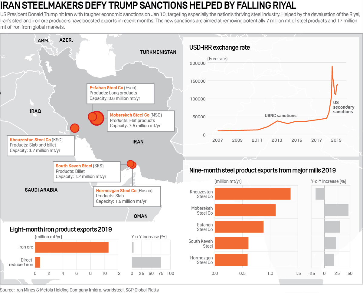Iran's steel and iron ore producers have boosted exports in recent months. The new sanctions are aimed at removing potentially 7 million mt of steel products and 17 million mt of iron from global markets.