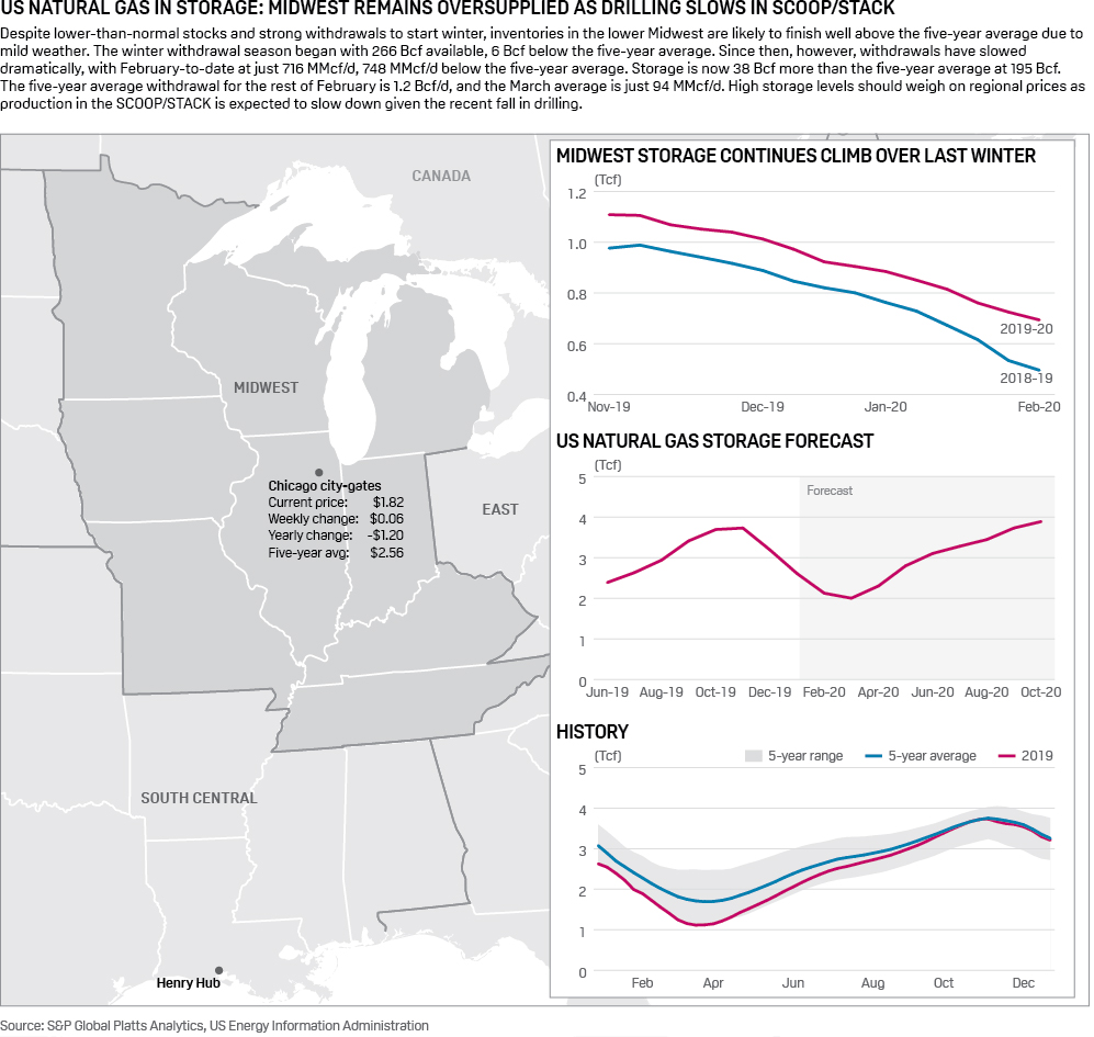 A forecast by Platts Analytics' supply and demand model expects a 118 Bcf draw for the week ending February 14, which is 18 Bcf below the five-year average.