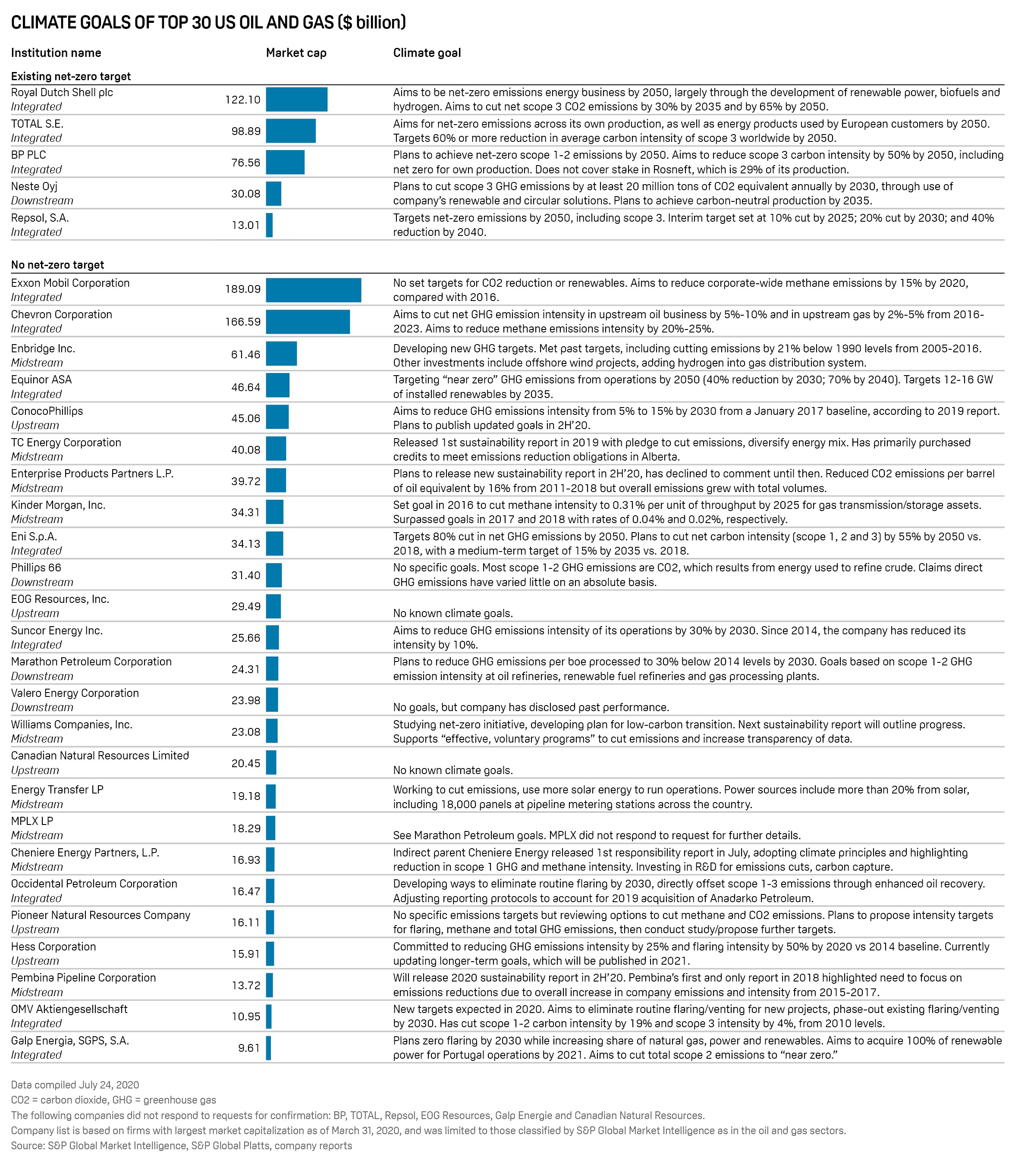 In the midstream space, the natural gas-focused Williams Cos. is the only major pipeline player even publicly considering such goals.