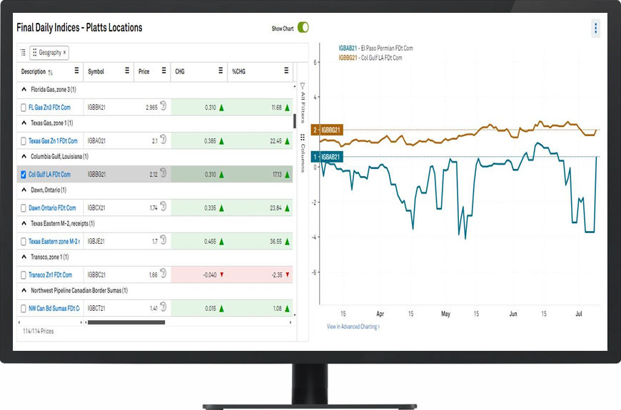 With access to our comprehensive Americas Gas & Power Market Data, gain full price history so you can dive into historical price trends, analyze market patterns, and strategize your next moves to stay ahead of the competition.