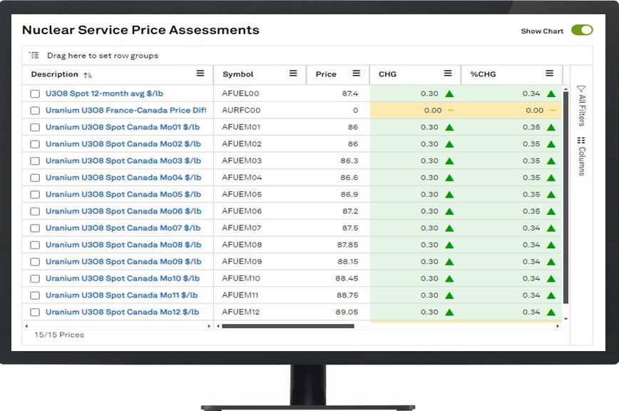 Our price benchmarks provide essential insights in key areas such as coal and nuclear energy. Notably, we offer assessments for Asia Pacific and Atlantic Thermal Coal, the Southeast Asia Thermal Coal Marker (SEAT), and the Northeast Asia Thermal Coal Index (NEAT). Equip your business with Platts data to navigate the complexities of the energy market and make informed decisions.