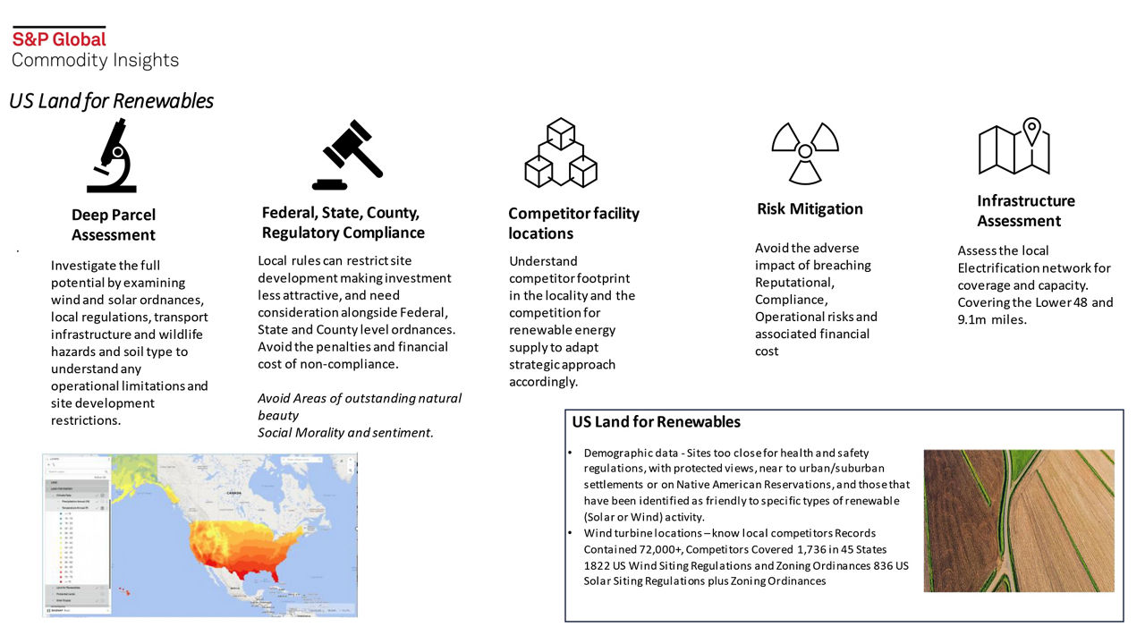 The S&P Global Land for Renewables solution empowers organizations to streamline their land purchase decisions for renewable energy projects by providing a comprehensive, map-based data source that integrates environmental, physical, and demographic insights. With the innovative Land Studio 2.0 interface, users can efficiently identify optimal land characteristics, gain a competitive edge in project planning, and minimize risks associated with land siting. This innovative tool not only accelerates decision-making but also aligns with sustainability goals, supporting the transition to a greener future.