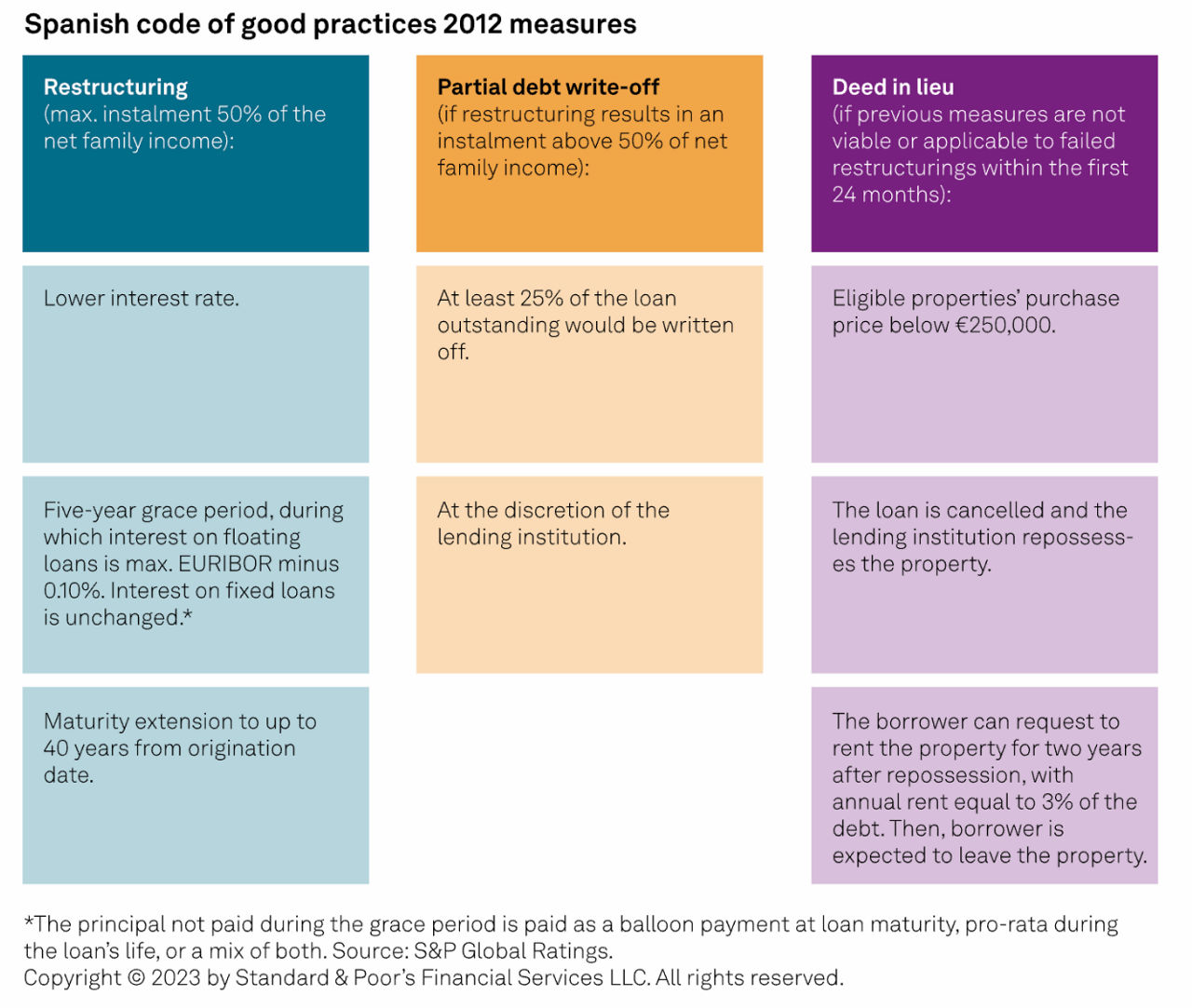 The Spanish Code of Good Practices (CGP) aims to protect vulnerable mortgage borrowers whose primary residence purchase cost was below €300,000. Royal Decree Law 6/2012 initially regulated the GCP, followed by the additional Royal Decree law 1/2013, which also protected vulnerable borrowers from eviction through May 2020. This measure was extended for another four years in the Royal Decree Law 6/2020 until May 2024.