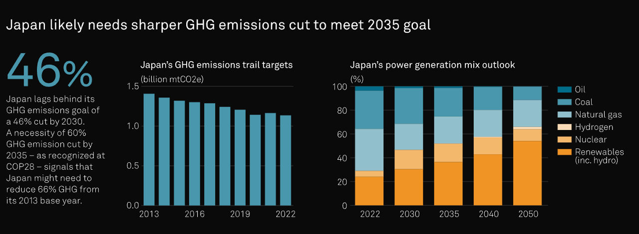 Japan held a series of discussions June 28 to formulate a fresh plan on countering global warming — laying the foundation for the government to consider new greenhouse gas emissions reduction target for 2035 that will be summitted to the UN by February next year. The meeting — jointly held by the Ministry of Environment and the Ministry of Economy, Trade and Industry — signals growing efforts by the government to review the country's key energy and climate policies by end-2024, as Japan aims to map out a new national strategy for its green initiative "GX 2040 Vision" by end-March 2025.