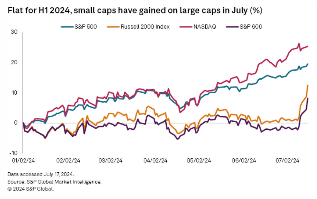 After lagging large capitalization stocks for months, small-cap stocks may be having a moment. The S&P 600, an index of smaller-cap stocks, fell by just over 1% through the first six months of the year, while the large-cap S&P 500 rallied about 15.1%. From July 1 to July 16, however, the S&P 600 rose 10.3%, while the S&P 500 went up 3.5%. The Russell 2000, another index of small-cap stocks, increased 11.5% during the same period after rising just 1.7% in the first six months of the year.