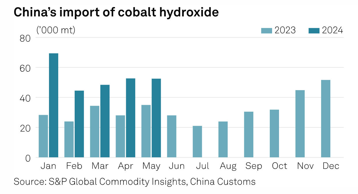 The cobalt market is expected to be pressured by oversupply and changing battery chemistry preferences into the third quarter of 2024, with market participants not anticipating a price recovery before September following a temporary boost from China's stockpiling initiatives in the second quarter. Global cobalt raw material output has been forecast to reach 238,000 metal tons in 2024, rising from 220,000-230,000 metal tons in 2023, China's state-owned research agency Antaike has said.