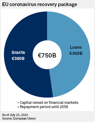 The European Union's €750 billion coronavirus rescue package has been hailed as a big step toward a full-blown "banking union," but major obstacles remain. The EU unveiled its plan to kick-start the bloc's economy in the wake of the pandemic on July 21, marking the first time that the European Commission would issue its own bonds on a significant scale. It plans to raise €750 billion over two years in long-term debt, so establishing a federal deficit for the EU for the first time. It creates a contingent liability for the 27 member countries based on member states' guarantees and in line with their share of the total gross national income of the union.