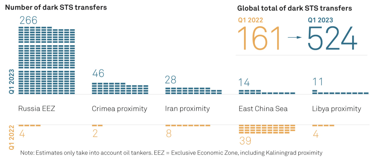 Faced with tough Western sanctions, Russia is adapting a tried and tested playbook to conceal the origins of oil cargoes. Crimean waters and Russia's exclusive economic zone have become the preeminent locations for dark ship-to-ship transfers, where ships involved turn off their AIS transponders, leading to heightened trade risks.