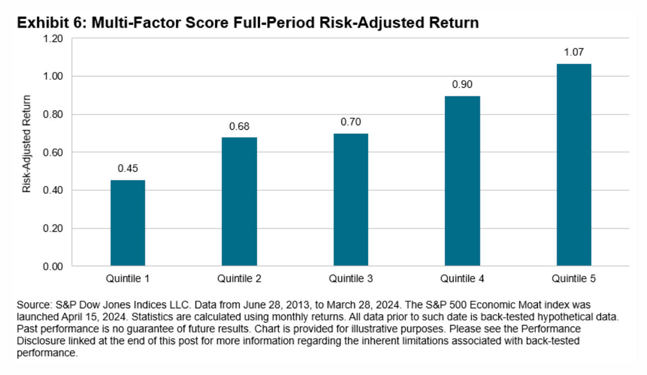 In a previous blog, S&P Dow Jones Indices introduced the newly launched S&P 500® Economic Moat Index by reviewing its methodology, index characteristics and historical performance. In this blog, it will examine the specific quantitative metrics used to identify the companies with the widest economic moats. Furthermore, it will discuss the complementary nature of the metrics, which has historically led to strong performance when combining the metrics into a multi-factor score.
