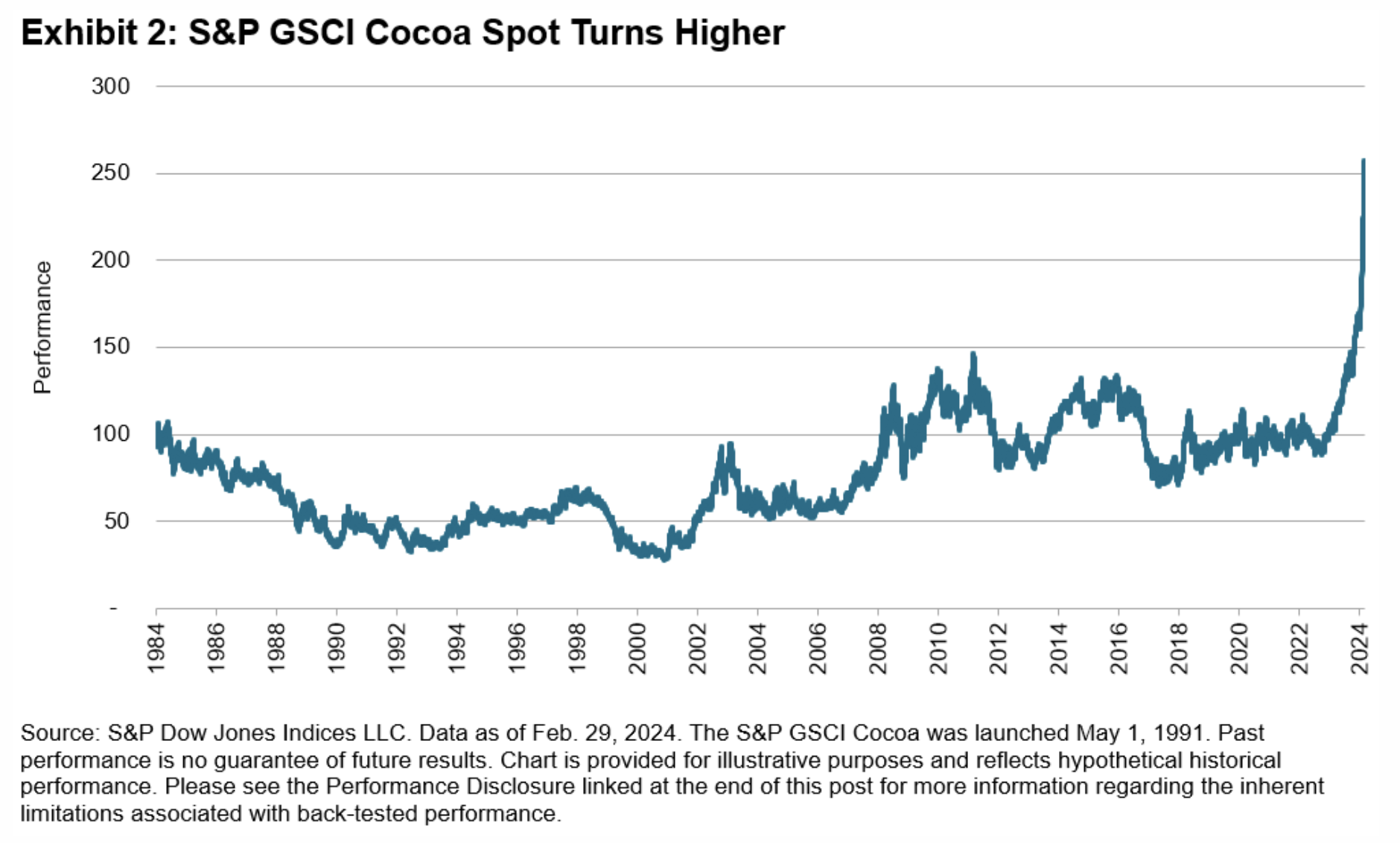 Inflation continues to impact consumers and policymakers in negative ways. Hedging through broad commodities has proven to buffer portfolio returns, with the S&P GSCI up 5.38% this year. Going into the year, expectations of Fed rate cuts and continued declines in the Consumer Price Index (CPI) pushed inflation concerns aside. Since then, markets have experienced increased inflation figures and downsized rate cut bets.