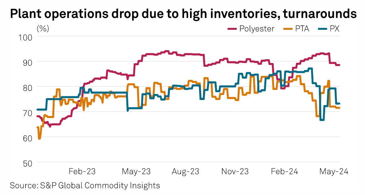 After the challenging first five months of 2024, participants in the Asian paraxylene market are gearing for more pain in the second half, as top consumer China battles growing domestic inventories along with higher production, while global demand recovery remains nascent. Asian PX prices averaged at $1,031.72/mt so far this year, recovering from a year-to-date low of $1,001/mt reached on May 14, according to Platts assessments by S&P Global Commodity Insights. However, prices remained below the January-May 2023 average of $1,045.29/mt.