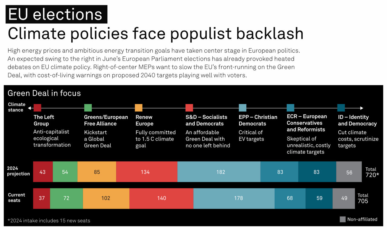 Shaken by several crises in the past five years, EU citizens voting in the bloc's elections in June will be doing so amid concerns over high inflation, rising energy costs and a war on their doorstep. Climate action could be a harder sell, and polls indicate a shift to the right. A new European Commission will also have to forge a path forward through challenging geopolitical relations with China, a key manufacturer contributing to the EU's clean technology supply chains.