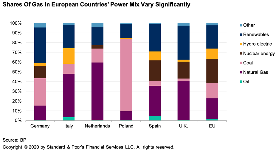 S&P Global anticipates that gas will remain an important part of the European energy mix during the next decade. Most countries plan to retire very large coal and nuclear generation capacity and their energy mix will still need options that complement intermittent renewables.