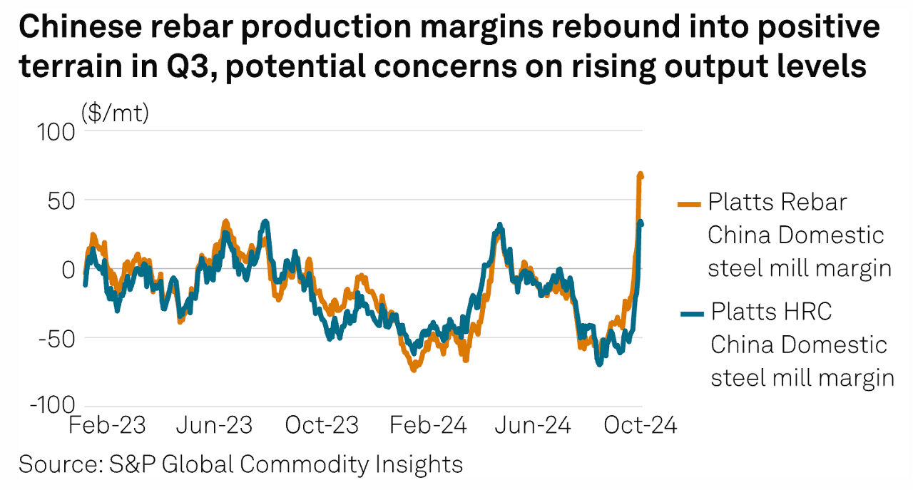 Asia-Pacific steel and scrap prices looked set for a mixed Q4, with expectations of more stimulus measures from China likely tempered by muted demand and increased output. The initial unveiling of the broad measures by Chinese policymakers led to exuberance in the stock market before the weeklong Golden Week holiday, pushing the major index higher by about 30% during the week, measured by the SPDR S&P China ETF.