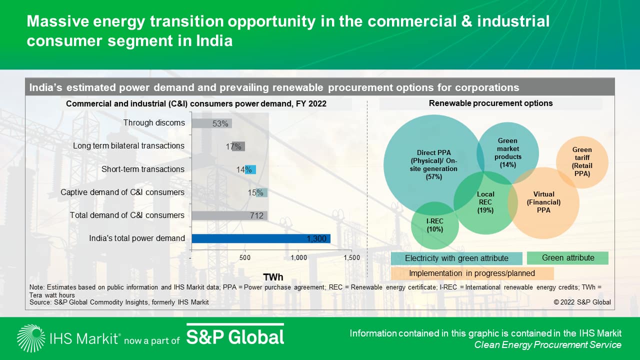 Corporate renewable contracts are rising in India as the sustainability targets and favorable economics of wind and solar drive procurement decisions. Overall, the current corporate renewable market is estimated to be more than 14 GW dominated by physical procurement of electricity through captive or open access route. In the first six months of 2022, more than 4.5 GW of renewable power purchase agreements were announced from commercial and industrial consumers from various sectors including materials, manufacturing and services.