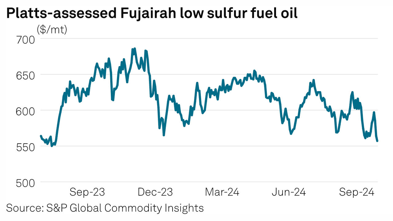 Stockpiles of oil products at the UAE's Port of Fujairah rose 2.5% in the week ended Sept. 30 after plummeting to a 2 1/2-year low a week earlier, according to Fujairah Oil Industry Zone data published Oct. 2. The total increased to 15.001 million barrels from 14.635 million barrels a week earlier, the lowest since Feb. 14, 2022, according to the FOIZ data compiled by S&P Global Commodity Insights. Stockpiles have now shrunk 13% since the end of 2023.