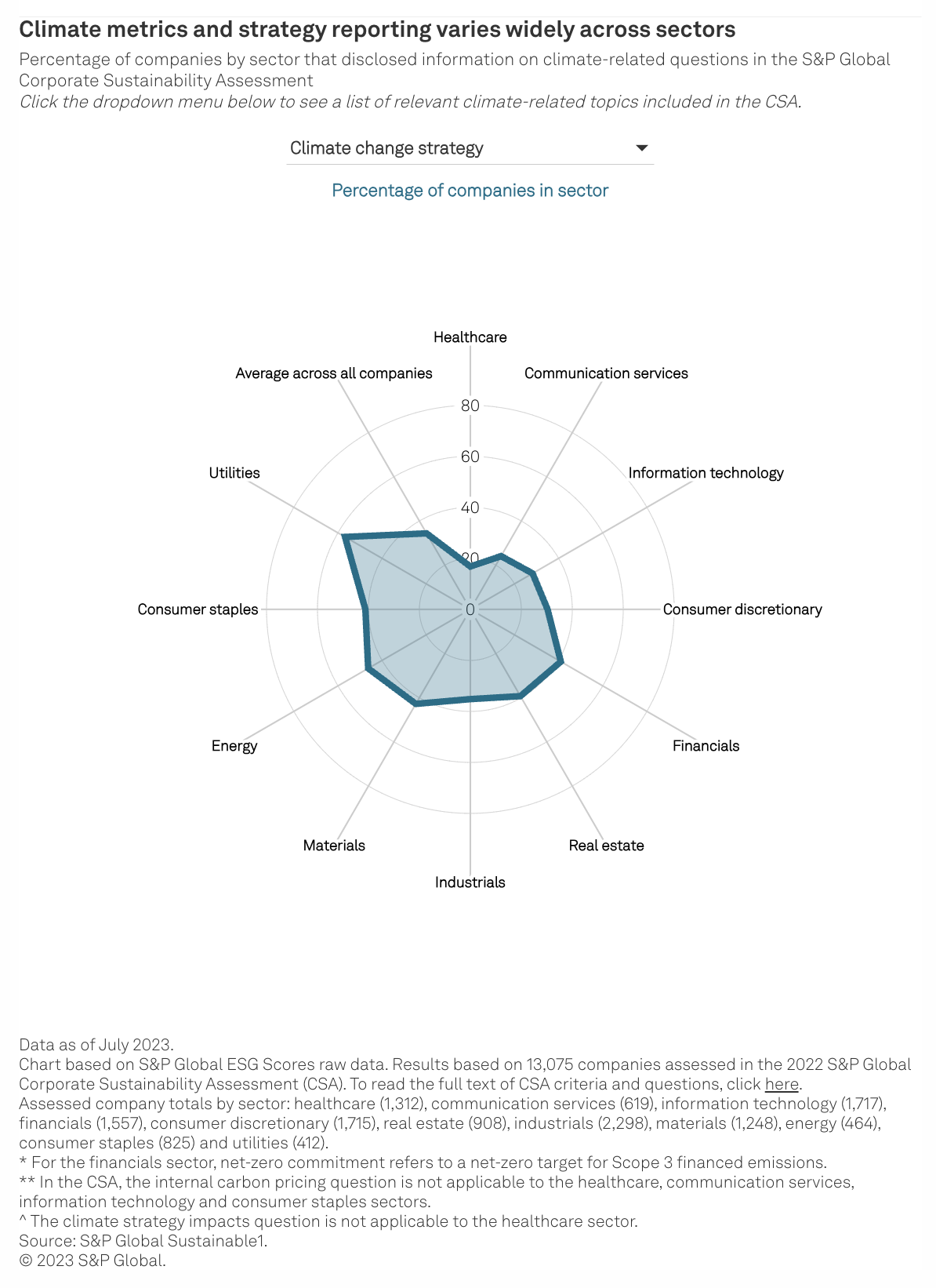A new climate disclosure standard from the International Sustainability Standards Board asks companies to disclose climate-related information and metrics. The IFRS S2 Climate-related Disclosures standard could become the basis for globally consistent climate disclosure if it is widely adopted. As companies prepare to implement S2, S&P Global Sustainable1 used S&P Global Corporate Sustainability Assessment data to understand the widely varying levels of climate disclosure around the world.