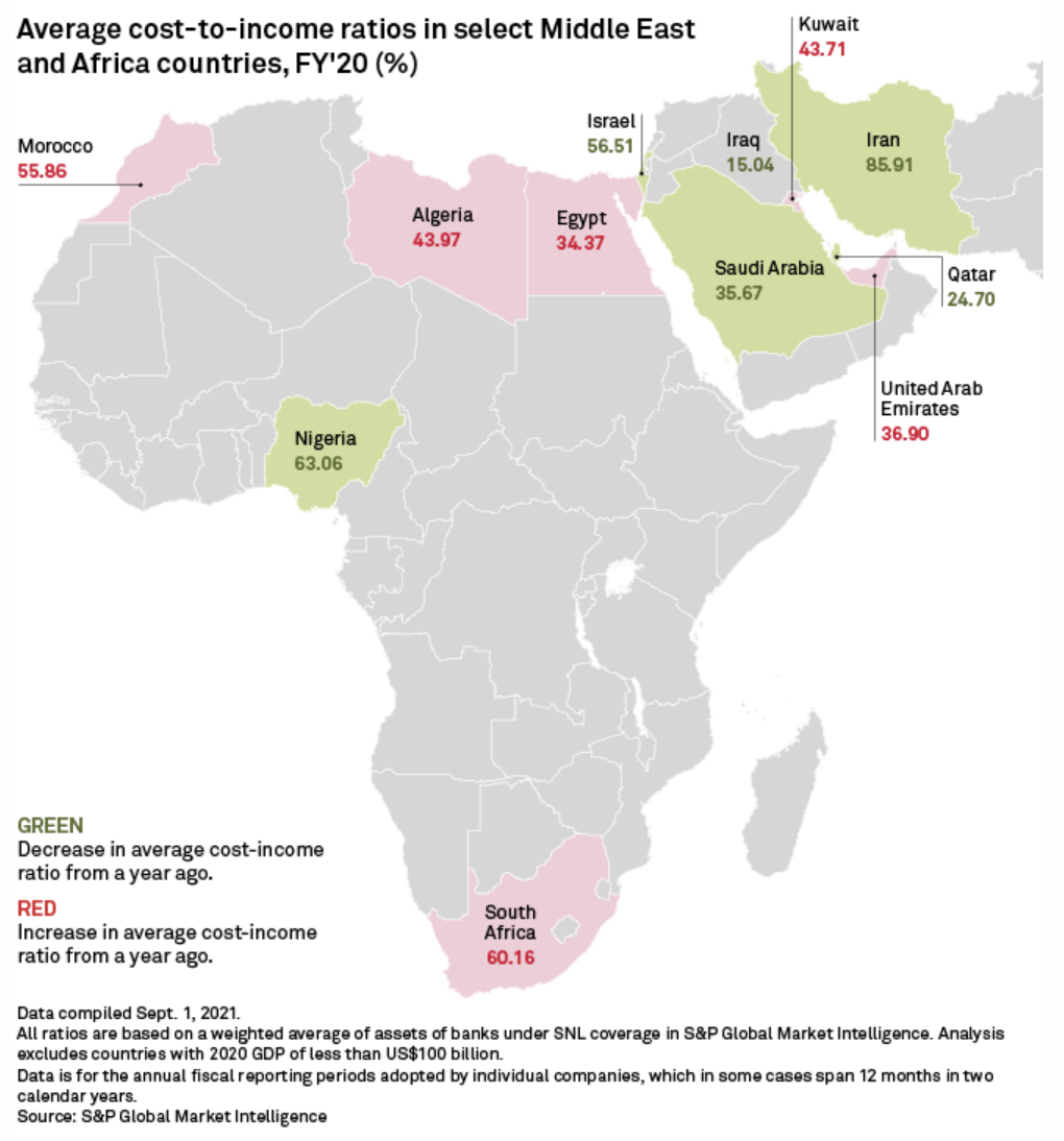 Israeli banks remain the least efficient among lenders in the Middle East region despite improving their efficiency ratios since the start of the pandemic.