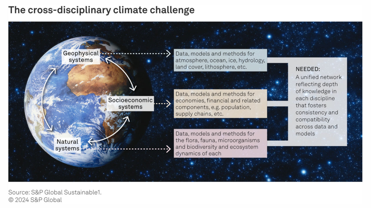 To better estimate the financial impact of climate change, the physical science, economics and ecological disciplines must collaborate and address complex problems on the frontiers of their respective fields. The cross-disciplinary challenge is to forge a common understanding of how diverse and complex models and data can be linked in a consistent way.