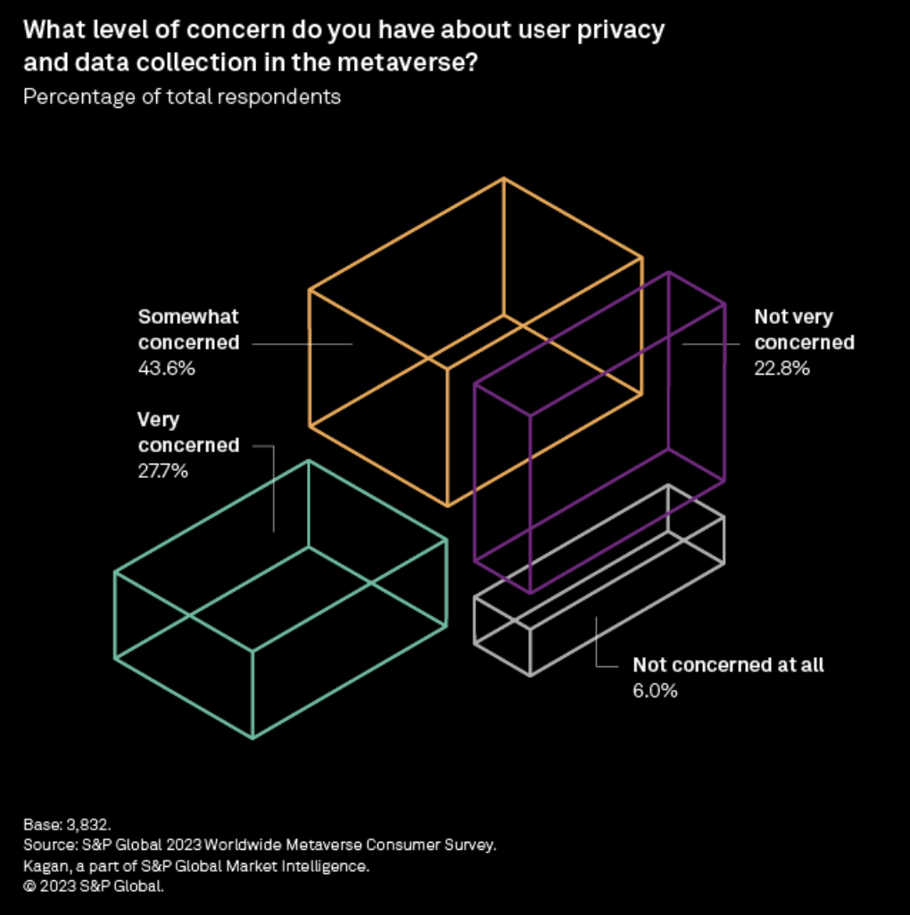 A strong majority of the respondents to S&P Global's recent consumer metaverse survey expressed concerns about how virtual environments are currently operating. Issues ranging from user privacy and data collection to the security of payment transactions in the metaverse were all viewed as problematic. While these respondent concerns are not overly surprising to anyone who has spent time in a virtual environment, they highlight some key barriers to broader acceptance of the consumer metaverse.