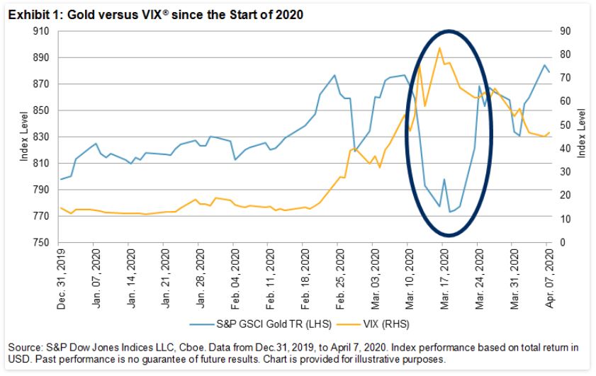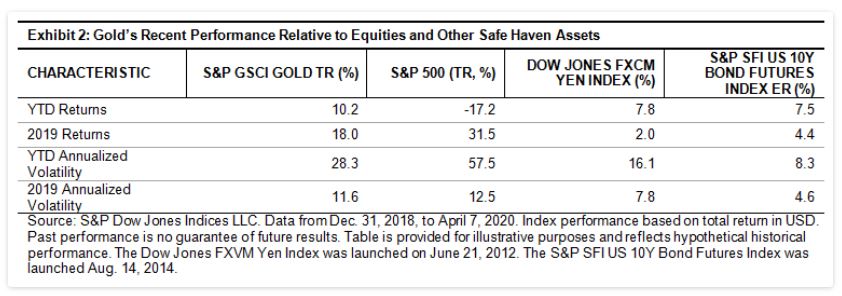 Much has been made of the relative performance of gold since the start of the global COVID-19 pandemic. The S&P GSCI Gold gained 10.2% YTD through April 7, 2020, highlighting its safe-haven status; however, it is worth reviewing this performance and considering what demand drivers may influence gold prices over the coming months.