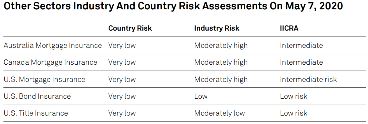Since our most recent publication ("Insurance Industry And Country Risk Assessment Update: January 2020," published Jan. 28, 2020), we have assigned IICRAs on Azerbaijan’s property and casualty (P/C) sector. We have also revised the Canada and Australia Mortgage Insurance IICRA assessment to intermediate risk from low risk, and revised the Austria life industry risk assessment to moderately high from moderately low.